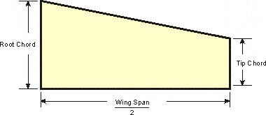 Área de asa = 1 / 2 x Envergadura Chord Root x